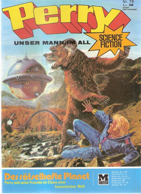 Perry unser Mann im All Nr.79Titel: Der rätselhafte PlanetVerlag: Moewig Comic Heft 30 SeitenFormat: 18 x 26 cmGewicht: 54 gZustand: gelocht, sonst gut