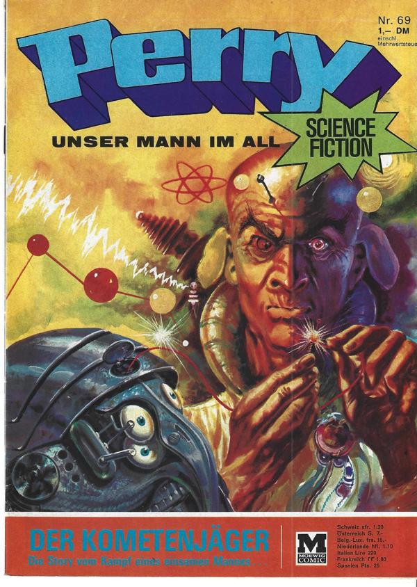 Perry unser Mann im All Nr.69Titel: Der Kometenjäger.Verlag: Moewig , 1973Comic Heft 30 SeitenFormat: 18 x 26 cmZustand: sehr gut