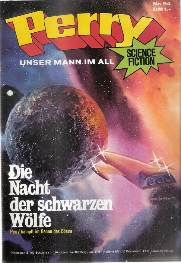 Perry unser Mann im All Nr. 94Titel: Die Nacht der schwarzen WölfeVerlag: Moewig , 1974Comic Heft 30 SeitenFormat: 18 x 26 cmGewicht: 55 gZustand: gelocht, sonst gut