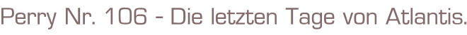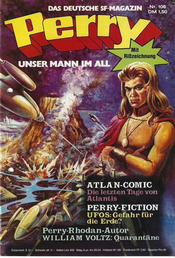 Perry unser Mann im All Nr.106Mit RißzeichnungTitel: Die letzten Tage von Atlantis.Verlag: Moewig , 1974Comic Heft 46 SeitenFormat: 18 x 26 cmZustand: gelocht, sehr gut