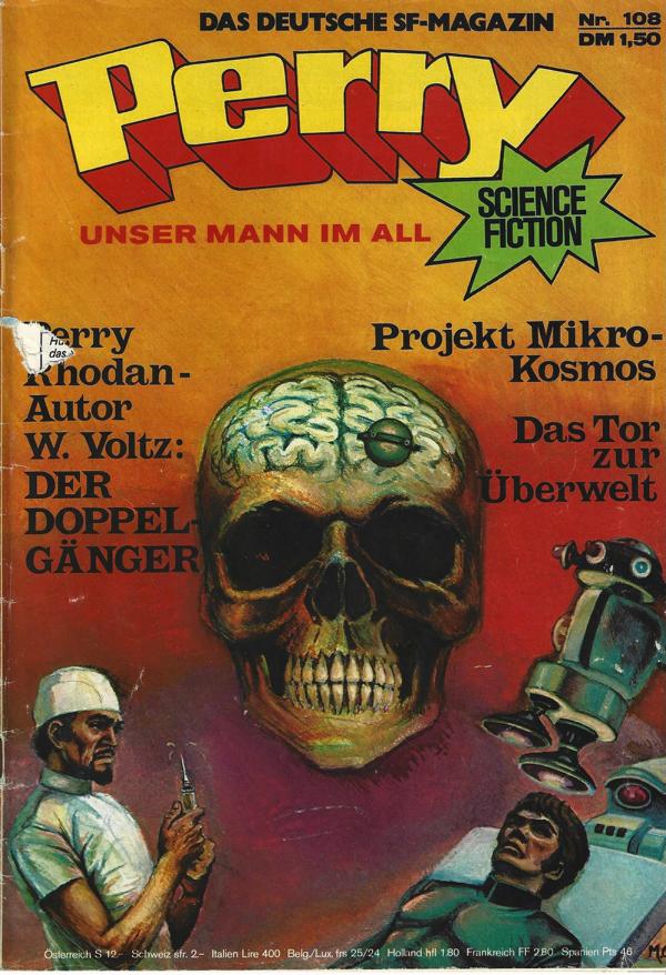 Perry unser Mann im All Nr.108Titel: Projekt Mikrokosmos.Verlag: Moewig , 1974Comic Heft 46 SeitenFormat: 18 x 26 cmZustand: Titelbild beschädigt,ansonten guter Zustand