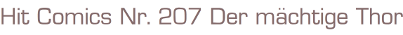 Hit Comics - Der mächtige Thor Nr. 207Bildschriftenverlag GmbH, Aachen, (c) 1972Comic Heft, 4 Farben DruckFormat: 17,5 x 25 cmZustand: gut, Falz beschädigt