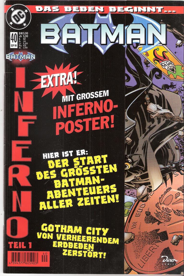 Batman Nr. 40/1999Inferno Teil 1 von 4Verlag: DC Sept.1999Heft, Format: 17 cm x 25,5 cm Gewicht: 130 gZustand: gutComic