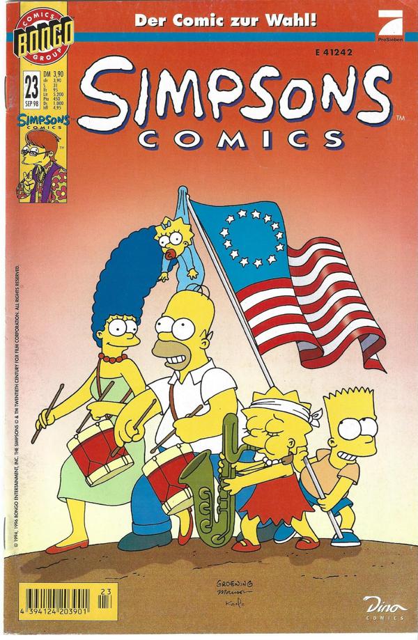 Simpsons Comics Nr. 23 Sept.98Verlag: Dino Verlag 1998Comic HeftFormat: 17 cm x 25,5 cmZustand: gebraucht, gut Comic