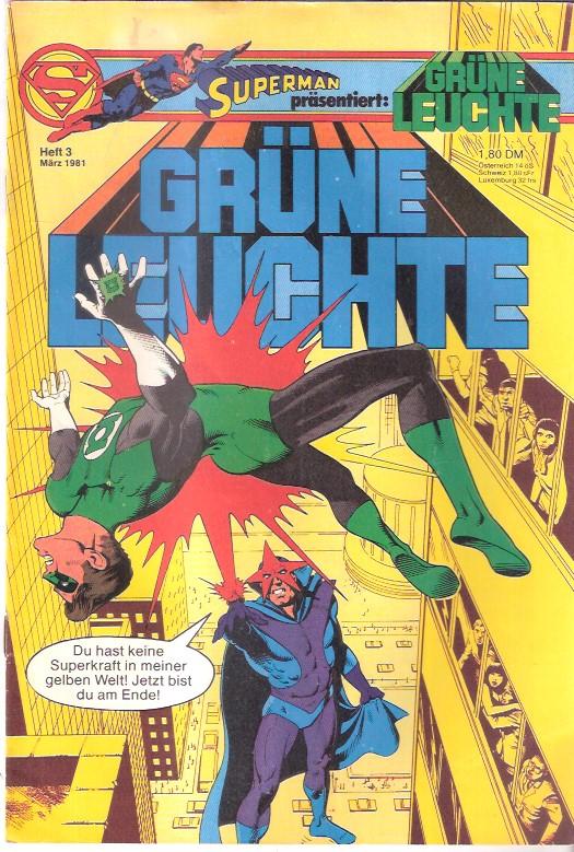 Comic - Grüne Leuchte 3 /1981Verlag: Ehapa (c) 1981Heft 31 SeitenFormat: 17,5 cm x 26 cmGewicht: 50 gZustand: gut, kleine Gebrauchsspuren