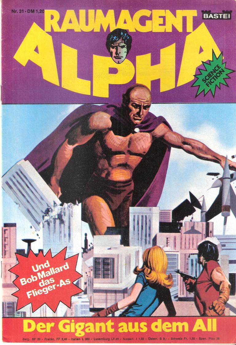 Raumagent alpha Nr. 31Science FictionTitel: Der Gigant aus dem AllVerlag: Bastei Comic-Heft 38 SeitenFormat: 18 x 26 cmGewicht: 73 gZustand: gut bis sehr gut