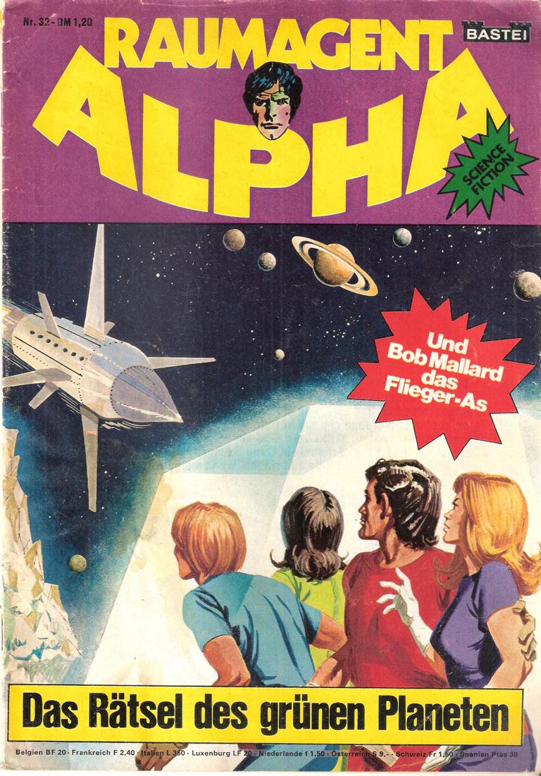 Raumagent alpha Nr. 32Science FictionTitel: Das Rätsel des grünen PlanetenVerlag: Bastei Comic-Heft 38 SeitenFormat: 18 x 26 cmGewicht: 73 gZustand: gut,leichte Gebrauchsspuren