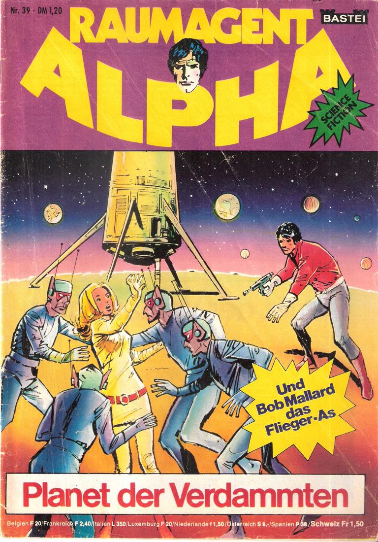 Raumagent Alpha Nr. 39Titel: Planet der VerdammtenVerlag: Bastei Comic Heft 39 SeitenFormat: 18 x 25,5 cmGewicht: 69 gZustand: mit leichten GebrauchsspurenEselsohrenComic