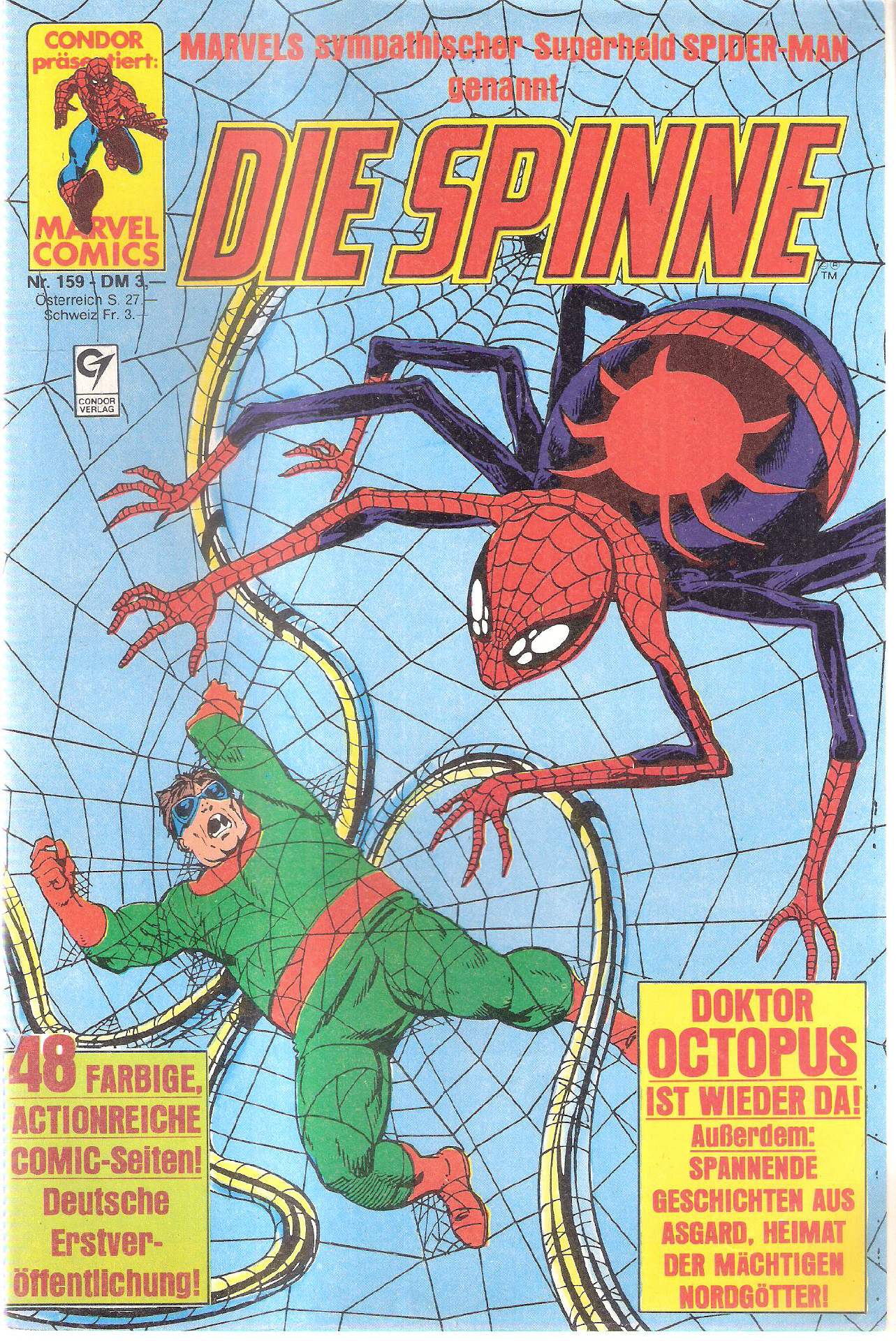 Condor präsentiert Marvel Comic - Die Spinne Nr. 159Titel: Die Rückkehr des Doktor OctopusVerlag: Condor Verlag (c) 1981-87Comic Heft Format: 17,5 x 26 cmZustand: sehr gut erhaltenes ExemplarComic Superhelden