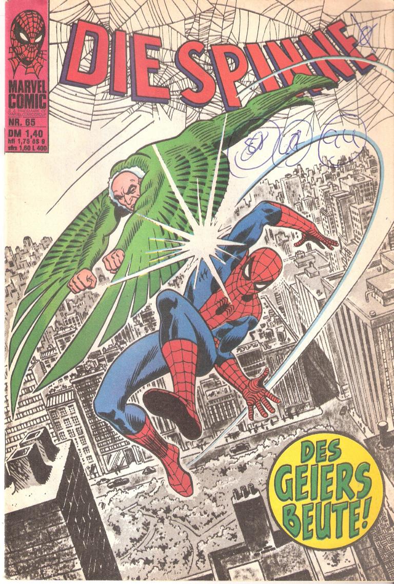 Marvel Comic - Die Spinne Nr. 65Titel: Des Geiers BeuteVerlag: (c) 1976 Williams VerlagComic Heft 31 SeitenFormat: 17,5 x 26 cmGewcht: 52 gZustand: gebraucht, Cover und Seite 1mit Kugelschreiber verschmiert, sonst guter ZustandComic Superhelden
