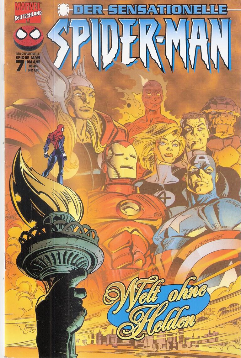 Der sensationelle Spider-Man Nr. 7Titel: Welt ohne HeldenMarvel Comic HeftFormat: 17 x 26 cmGewicht: 139 gZustand: sehr gut