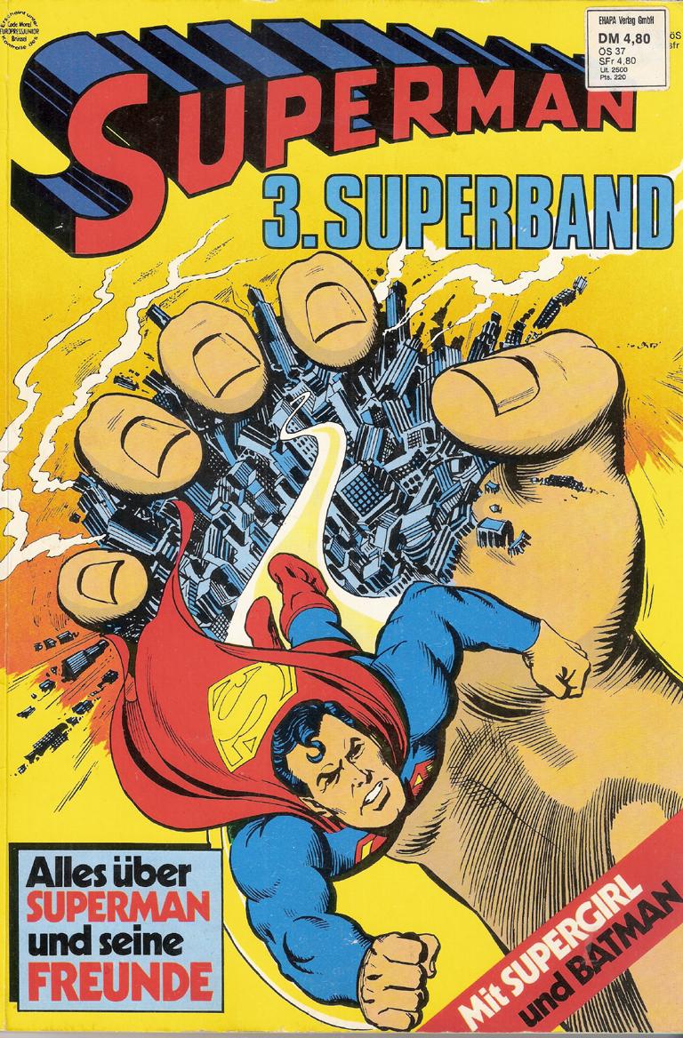 Titel: Superman 3. SuperbandVerlag: Ehapa Verlag 1980Softcover, 82 SeitenFormat: 19 cm x 28 cm Gewicht: 196 gZustand: leichte Gebrauchsspuren, sonst gut