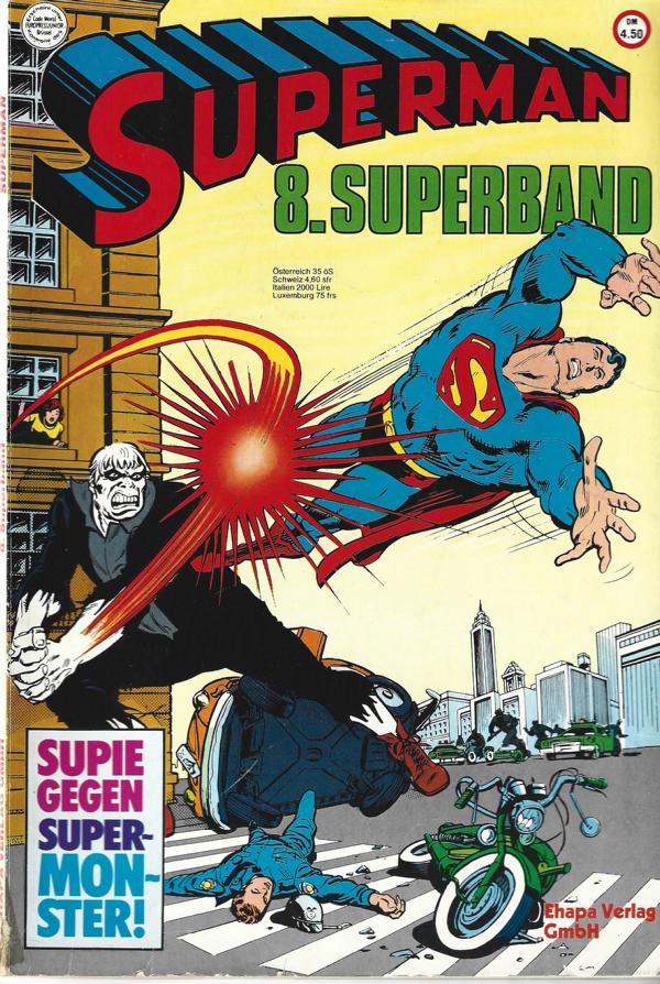 Superman 8. Superband Titel: Supie gegen Supermonster!Verlag: Ehapa Verlag GmbH Stuttgart (c) 1977Comic-Heft 81 SeitenFormat: 19 x 28 x 0,6 cmZustand: gut, leichte Gebrauchsspuren