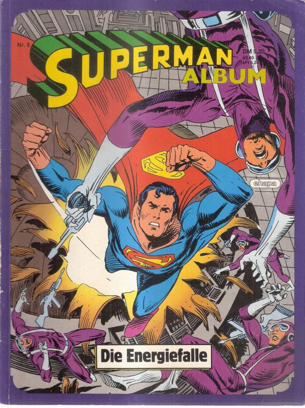 Superman Album Nr. 9Titel: Die EnergiefalleVerlag: Ehapa Verlag GmbH Stuttgart (c) 1978Comicheft 50 SeitenFormat: 21,5 x 28,5 cmGewicht: 150 gZustand: gut, leichte Gebrauchsspuren