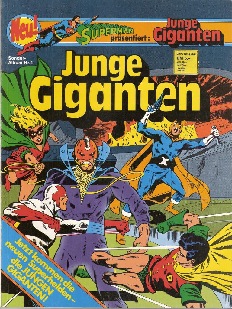 Superman präsentiert: Junge Giganten Sonderalbum Nr. 1Verlag: Ehapa GmbHHeft, 50 Seiten Format: 21,5 28,5 cmGewicht: 158 gZustand: gut-sehr gutComic Superhelden