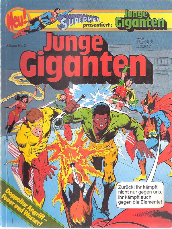 Superman präsentiert: Junge Giganten Album Nr. 2Doppelter Angriff - Feuer und WasserVerlag: Ehapa GmbH 1981Softcover, 50 Seiten Format: 21,5 cm x 28,5 cmGewicht: 158 gZustand: gutComic Superhelden