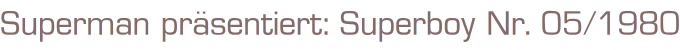 Superboy Nr. 05/1980Verlag: Ehapa Verlag GmbH Stuttgart Comic-Heft 31 SeitenFormat: 19 x 28 x 0,6 cmGewicht: 52 gZustand: gut, leichte Gebrauchsspuren
