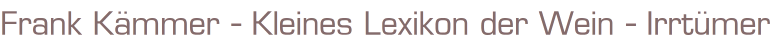 Titel: Kleines Lexikon der Wein - Irrtümer Autor: Frank Kämmer Verlag: Eichborn 2006 ISBN 9783821860336Hardcover, 189 SeitenFormat: 12,5 x 22 x 2 cmGewicht: 298 gZustand: gut
