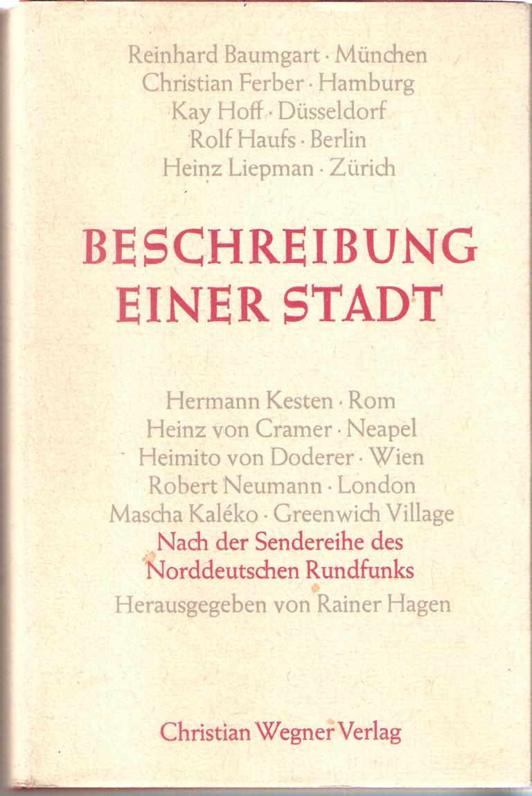 Titel: Beschreibung einer Stadt Autoren: Rheinhard Baumgart - München Christian Ferber - Hamburg usw.Verlag: Christian Wegner Verlag 1963Buch 1, 213 Seiten Format: 15 x 23 x 2,7 cmGewicht: 486 gZustand: gut Reisebescheibung