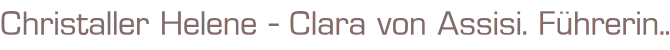 Clara von Assisi. Führerin der FrauenAutor: Christaller HeleneVerlag: Voltmedia, PaderbonISBN 393847825xKartonierte Ausgabe, 416 SeitenFormat: 12,5 x 19 x 3 cmZustand: gut erhaltenes Exemplarmit altersbedingten Standspuren