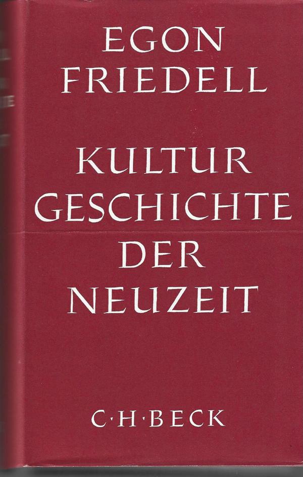 Kulturgeschichte der Neuzeit.Die Krisis der europäischen Seele von der schwarzen Pest bis zum ersten Weltkrieg.Autor: Egon FriedellVerlag: C.H.Beck, München Erste Ausgabe in drei Bänden 1927 bis 1931Buch gebunden, Dünndruck 1570 SeitenFormat: 13 x 20,5 x 5 cmZustand: sehr gut erhaltenes Exemplar