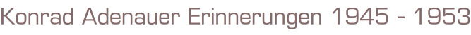 Titel: Konrad Adenauer Erinnerungen 1945 - 1953 Verlag: dva Deutsche Verlags - Anstalt 1965 Buch 1, 589 SeitenFormat: 15 x 23,5 x 4,5 cmGewicht: 1.005 gZustand: gutZeitgeschichte / Politik