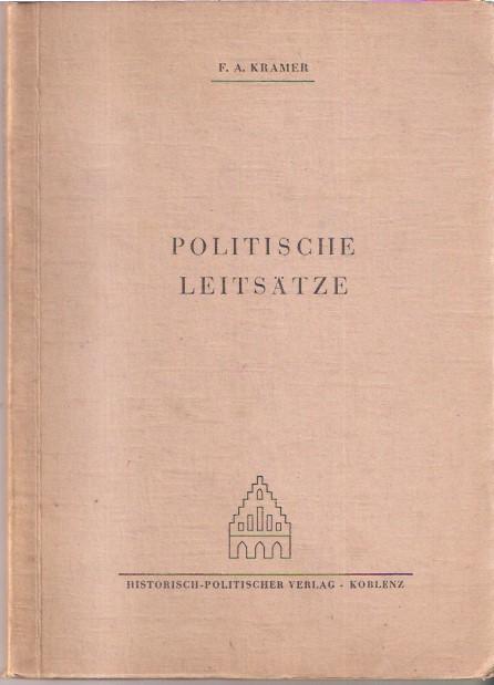 Titel: Politische LeitsätzeAutor: F.A.KramerVerlag: Historisch - Politischer Verlag KoblenzSoftcover, 95 SeitenFormat: 15 cm x 21 cm x 0,8 cmGewicht: 170 gZustand: gut, leichte Gebrauchsspuren,Papier nachgedunkeltZeitgeschichte