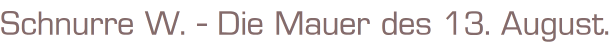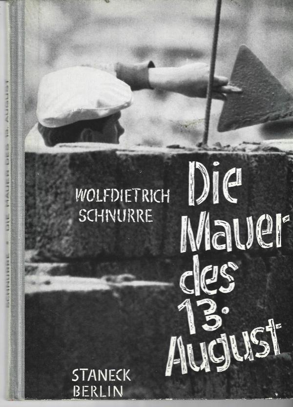 Die Mauer des 13. August.Autor: Wolfdietrich SchnurreVerlag: Ernst Staneck Berlin (c) 1962Halbleinen 108 SeitenFormat: 17 x 24 x 1 cmZustand: gut, altersbedingte Standspuren