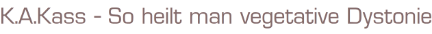 Titel: So heilt man vegetative Dystonie - Ratgeber für Nervenschwache Autor: Dr. med. K.A.Kass Verlag: Bircher - Benner - Verlag 7. Auflage 1989Softcover, 136 SeitenFormat: 13 x 19,5 x 1,2 cmGewicht: 183 gZustand: gut