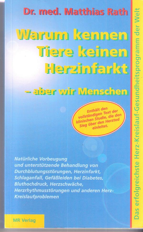 Titel: Warum kennen Tiere keinen Herzinfarkt - aber wir Menschen Autor: Dr. med. Matthias Rath ISBN 9076332010Verlag: MR Verlag 1998Softcover, 258 SeitenFormat: 12,5 cm x 20,5 cm x 2 cmGewicht: 300 gZustand: gutGesundheit - Naturmedizin - Medizin -