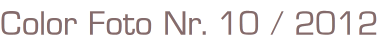 Titel: Color Foto Zeitschrift Nr. 10 / 2012Verlag: zeitschrift, 130 Seiten Format: 21 x 28 x 0,5 cmGewicht: 447 gZustand: sehr gutFotografie - Photographie