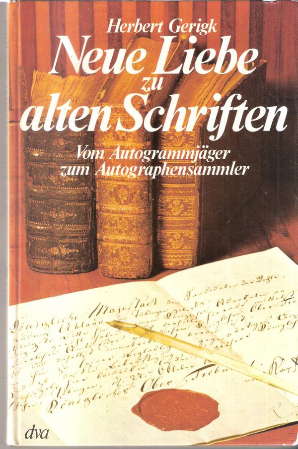 Titel: Neue Liebe zu alten Schriften - Vom Autogrammjäger zum AutographensammlerISBN 3421024219Autor: Herbert Gerigk Verlag: dva 1974 Hardcover, 106 SeitenFormat: 4 cm x 22,5 cm x 1,5 cmGewicht: 325 gZustand: mit Gebrauchsspuren