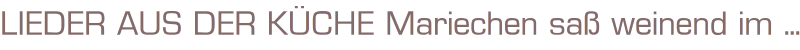 Lieder aus der Küche Mariechen saß weinend im...171 Lieder aus der Küche gesammeltund in acht Kränze gebundenISBN 3431029027Herausgegeben von Hartmann GoertzVerlag: Ehrenwirth 1986Gebundenes Buch, 257 SeitenFormat: 13 cm x 20,5 cm x 2,5 cmGewicht: 370 gZustand: guter ZustandKunst - Musik