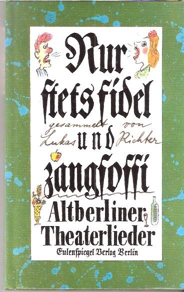 Titel: Nur stets fidel und zangsossi - Altberliner Theaterlieder - gesammelt von Lukas Richter Illustrationen von Volker Pfüller Verlag: Eulenspiegel Verlag Berlin 1986 Hardcover, 111 Seiten Format: 12 x 19,5 x 0,8 cm Gewicht: 157 gZustand: gut,
