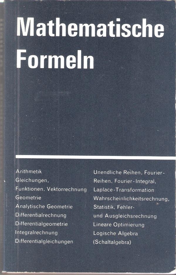 Titel: Mathematische Formeln mit 353 Bildern Von Dipl.-Ing. Hans - Jochen BartschVerlag: Buch und Zeit Verlagsgesellschaft Taschenbuch, 293 Seiten Format : 12 cm x 19 cm x 2,3 cmGewicht: 422 gZustand: gebraucht,