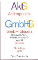 AktG Aktiengesetz; GmbH-Gesetz; UmwandlungsG; Mi.. (ij13 - 2002) AktG Aktiengesetz; GmbH-Gesetz; UmwandlungsG; MitbestimmungsG; WpÜG; SpruchG ISBN 9783423050104... 2,50 Euro (Kleinunternehmer im Sinne vom § 19 UStG. Es wird keine MWSt. ausgewiesen.)