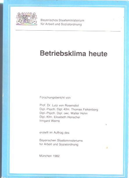 Titel: Betriebsklima heute Autor: Bayerisches Staatsministerium für Arbeit und Sozialordnung Verlag: Bayerischen Staatsministerium München 1982 Softcover, 535 SeitenFormat 14,8 cm x 20,7 cm x 3 cm Gewicht: 684 gZustand: gut