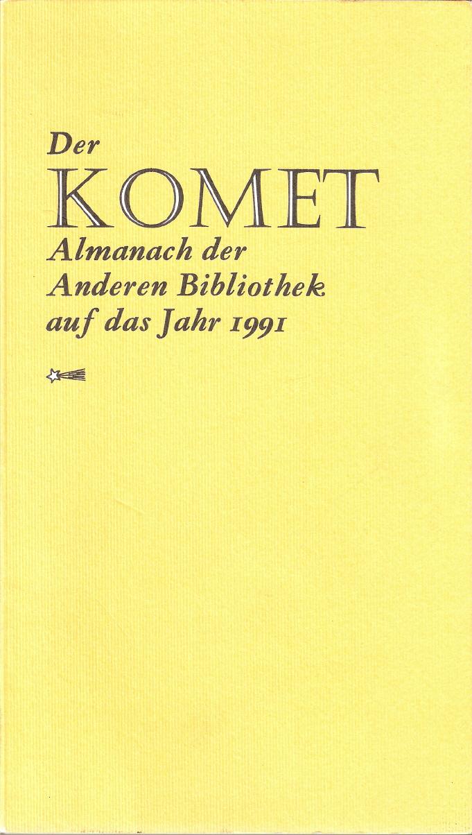 Almanach der Anderen Bibliothek auf das Jahr 1991Autor: Hans Magnus EnzensbergerVerlag: Vito von Eichborn 1990Taschenbuch 190 SeitenFormazt: 12 x 21,5 x 1,3 cmGewicht: 219 gZustand: gut, leichte Standspuren