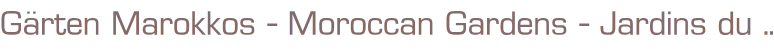 Gärten Marokkos - Moroccan Gardens - Jardins du Maroc.von: Charlotte Seeling + Corinne KordaISBN 3936761116Verlag: Feierabend (c) 2002Bildband 300 SeitenFormat: 27,5 x 32 x 3 cmZustand: sehr gut