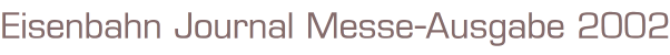 Eisenbahn Journal Messe - Ausgabe Nürnberg 2002 Zeitschrift, 113 SeitenFormat: 21 cm x 29,5 cmGewicht: 347 gZustand: gutEisenbahn -