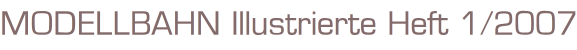 Titel: Modellbahn Heft 1/2007 Verlag: MBI Media GmbH, BerlinMagazin 66 SeitenFormat: 21 x 28,5 cmGewicht: 159 gZustand: gut Eisenbahnheft
