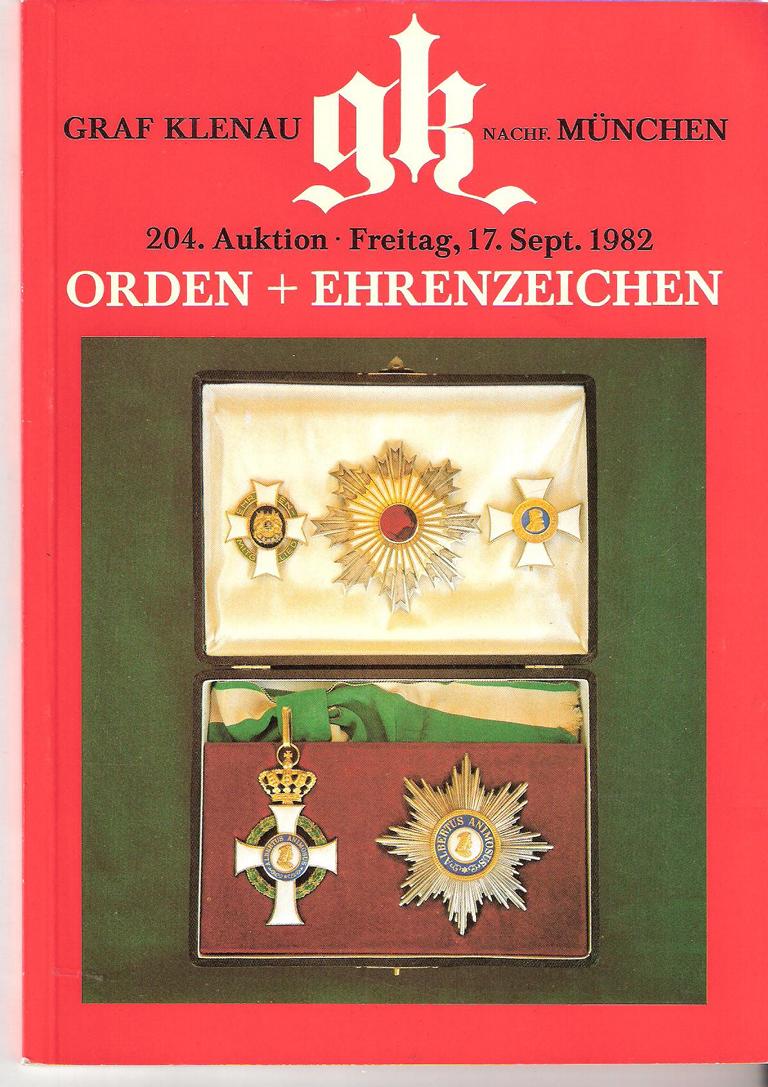KatalogGraf Klenau Nachf. München204. Auktion 17. September 1982 Orden + EhrenzeichenKatalog 88 SeitenFormat: 14,8 cm x 21 cm Gewicht: 130 gZustand: gut