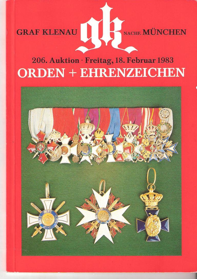 KatalogGraf Klenau Nachf. München206. Auktion 18. Februar 1983 Orden + EhrenzeichenKatalog 88 SeitenFormat: 14,8 cm x 21 cm Gewicht: 129 gZustand: gut
