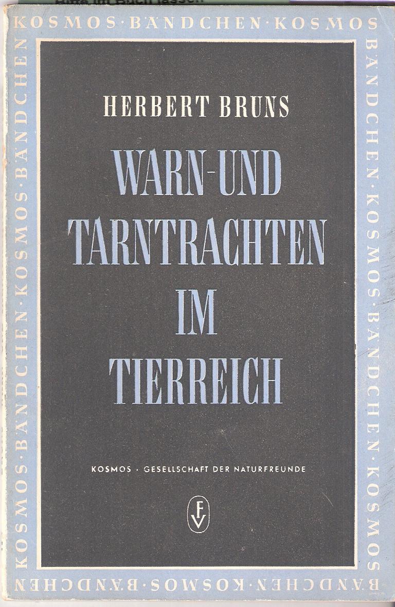 Titel: Warn- und Tarntrachten im TierreichAutor: Herbert BrunsVerlag: Kosmos Stuttgart 1952Taschenbuch 76 Seiten Format: 12,5 x 19,5 x 1 cmGewicht: 95 gZustand: gut, Papier leicht nachgedunkeltNaturführer