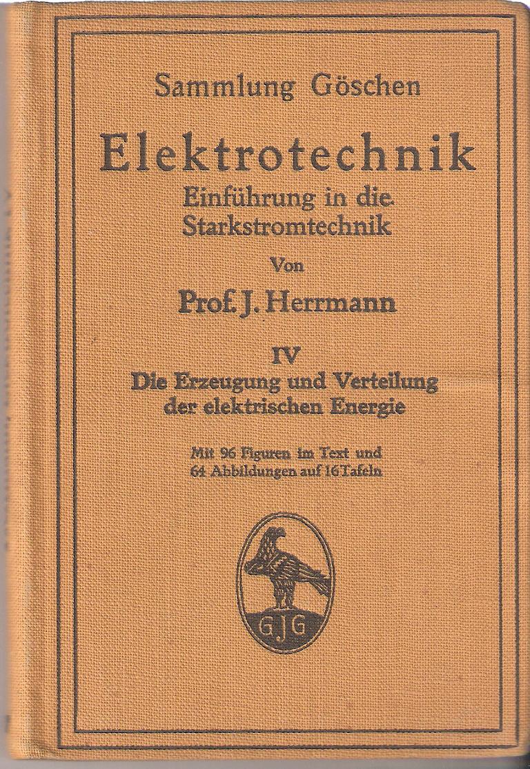 Sammlung Göschen Elektrotechnik IVEinführung in die Starkstromtechnikvon Prof. J. HerrmannDie Erzeugung und Verteilungder elektrischen Energiemit 96 Figuren im Text und64 Abbildungen auf 16 TafelnVerlag: G. J. Göschen´sche Verlagshandlung GmbH 1913Berlin und LeipzigBuch Leineneinband 140 SeitenFormat: 11 x 16 x 1 cmGewicht: 155 gZustand: gut, Ecken leicht angestoßenAuf den beiden ersten Seiten Name mitFilzstift durchgestrichenTechnik