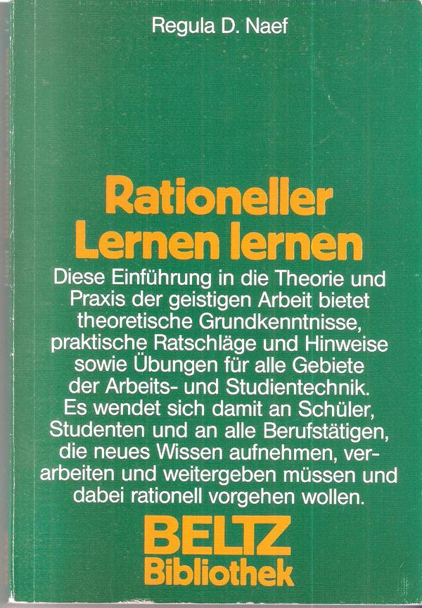 Titel.: Rationeller Lernen lernen ISBN 3407281617Autor: Regula D. Naef Verlag: Beltz Verlag 13. Auflage 1985 Taschenbuch, Softcover, 240 SeitenFormat: 13 cm x 19 cm x 1,3 cmGewicht: 245 gZustand: gutFamilie - Kinder - Erziehung