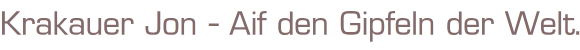 Auf dem Gipfel der WeltDie Eiger-Nordwand und andere TräumeAutor: Jon KrakauerAus dem Amerikanischen von Wolfgang RhielVerlag: (c) Piper 1999Buch mit Schutzhülle 290 SeitenFormat: 14 x 22 x 3 cmGewicht: 491 gZustand: gutKlettern - Bergsteigen - Reisebericht -