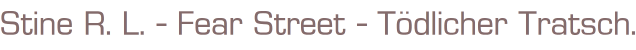 Titel: Fear Street - Tödlicher Tratsch. Wenn Neugier zum Verhängnis wird.Autor: R. L. StineISBN 9783785530054Verlag: Loewe 1. Auflage 1997Hardcover, 153 SeitenFormat: 12 x 19 x 2 cmZustand: sehr gut