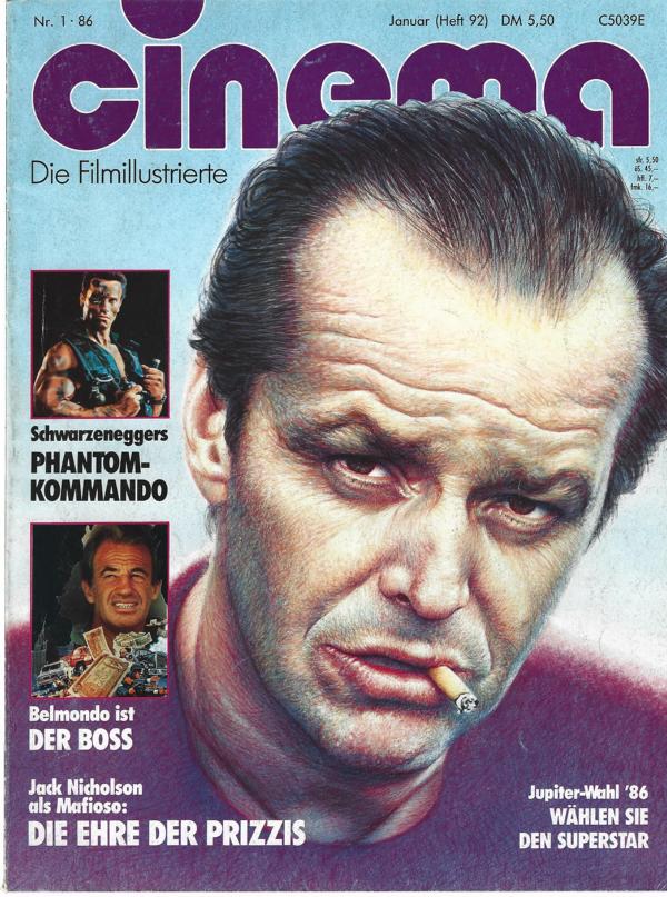 Europas größte FilmzeitschriftCinema Nr. 1/1986Titel: Schwazeneggers PhantomkommandoBelmondo ist DER BOSSJack Nickolson als Mafioso:Die Ehre der PrizzisMagazin, 116 SeitenFormat: 20,5 x 28 x 1 cm Zustand: gut Genre: Film - Filmmagazin