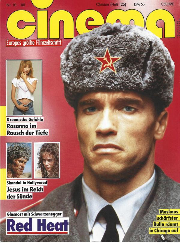 Europas größte FilmzeitschriftCinema Nr. 10/1988Titel: Glasnost mit SchwarzeneggerRed HeatMagazin, 210 SeitenFormat: 20,5 x 28 x 1 cm Zustand: gut Genre: Film - Filmmagazin